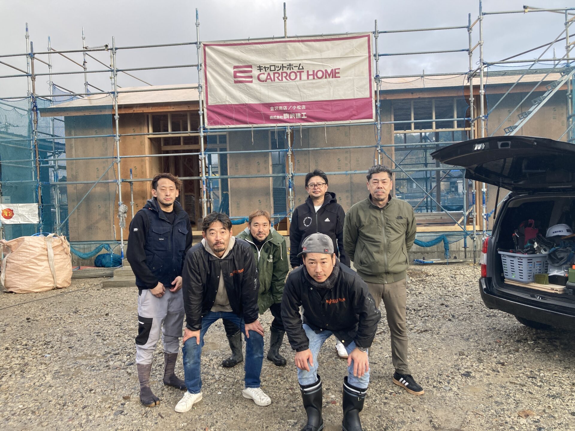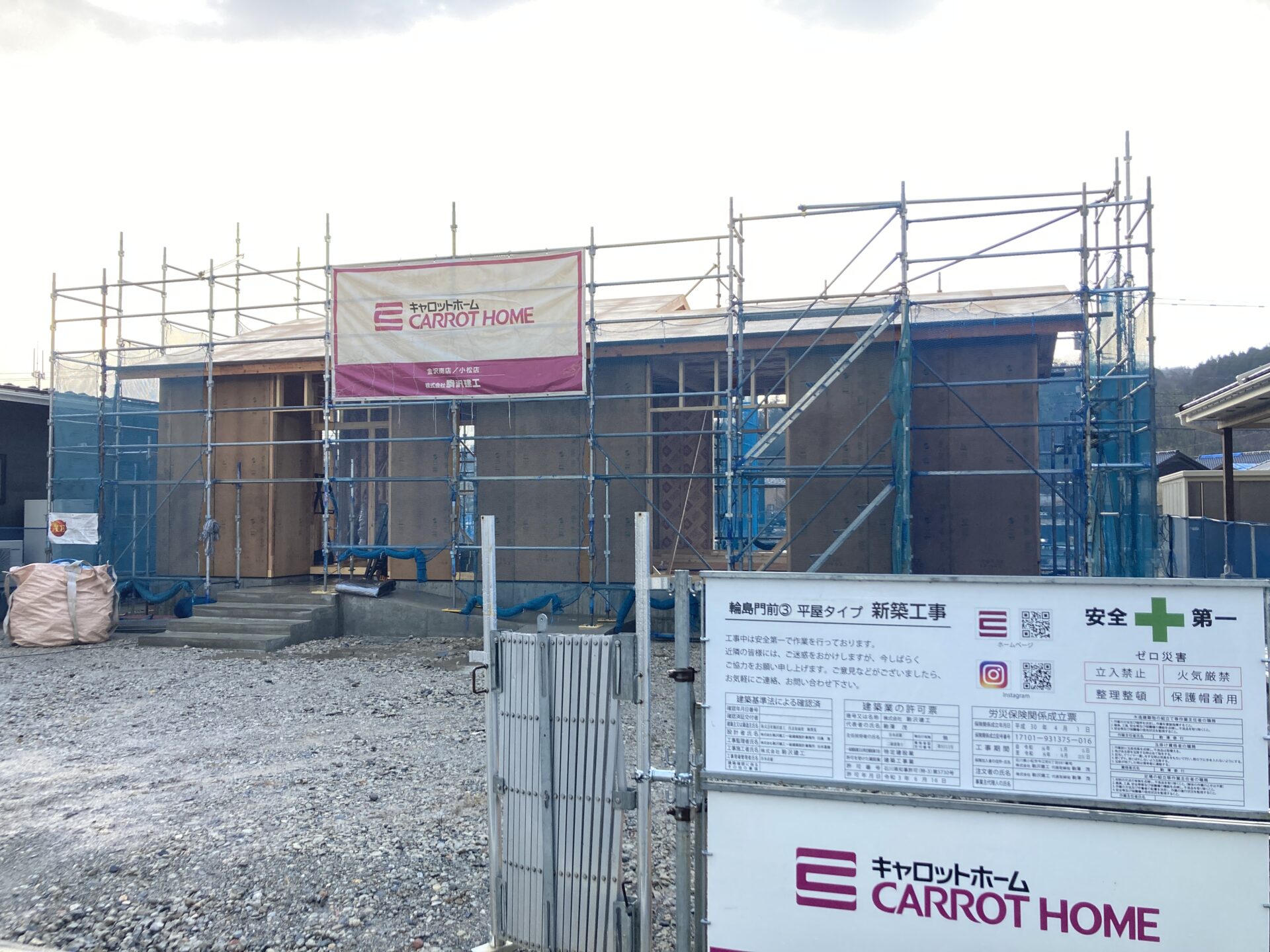 以前から能登エリアで開催しておりました【住まい再建相談会】において「住宅規模や仕様を実際に見て触れて確認したい」といった声があり、この度【安心・安全確保モデル事業(地域モデル実装型)】として石川県と輪島市・七尾市そして県内6社の住宅会社がスクラムを組み【いしかわ型復興モデル住宅整備協議会】の名のもと輪島市門前町にて当社のモデルハウスがめでたく上棟を迎えることが出来ました(#^^#)