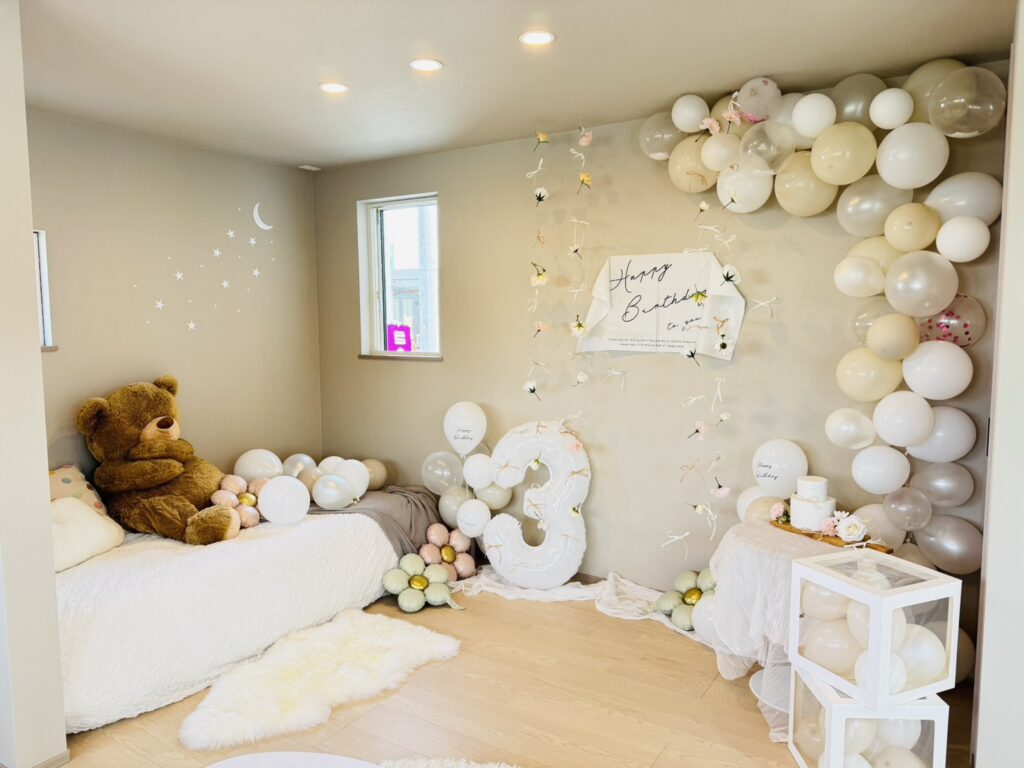 元々スタイリングしてあるところに、子どもの誕生日をコンセプトに飾り付けをしました!